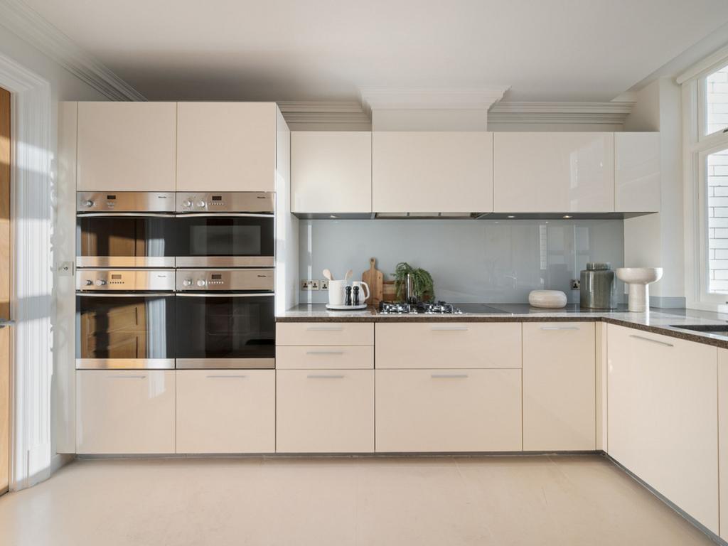 The air-conditioned apartment features three en-suite bedrooms with ample storage throughout for comfortable living. The bathrooms feature quality marble surfaces and brushed brass fittings. The modern kitchen includes all Miele appliances and marble worktops. This property is ideal for those seeking a central location without compromising on roominess.