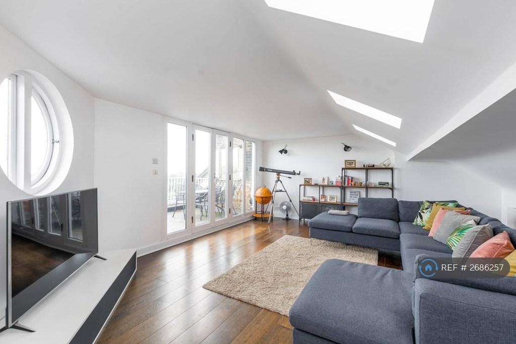 This bright and exceptionally spacious property benefits 2 double bedrooms, 1 shower room and an ensuite bathroom, utility / store room and an open plan kitchen / reception room. The top floor compromises a further reception room that leads to a private roof terrace with panoramic views over the London Skyline.