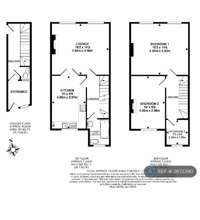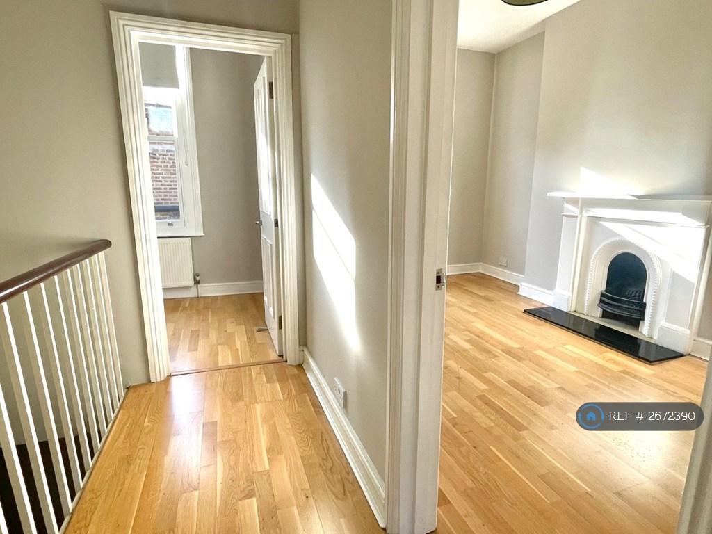 Two large double bedrooms and a bright study /home office / nursery. Bath and shower with a second separate downstairs guest WC.