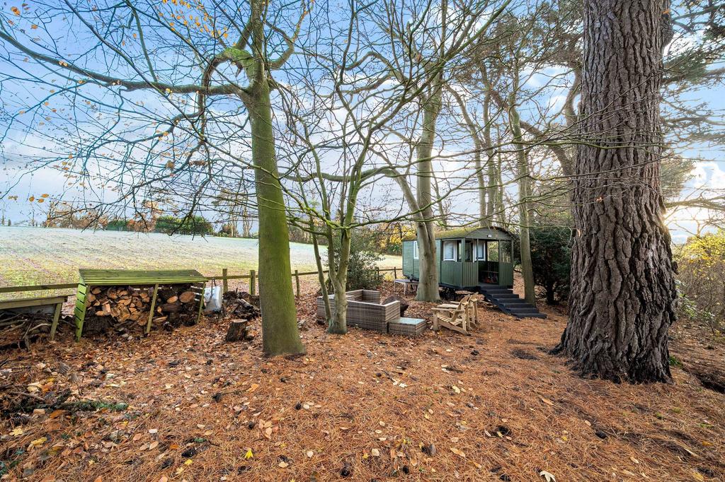 - Woodland area across lane from house with Shepherds hut, ideal space for fire pit and seating overlooking paddocks