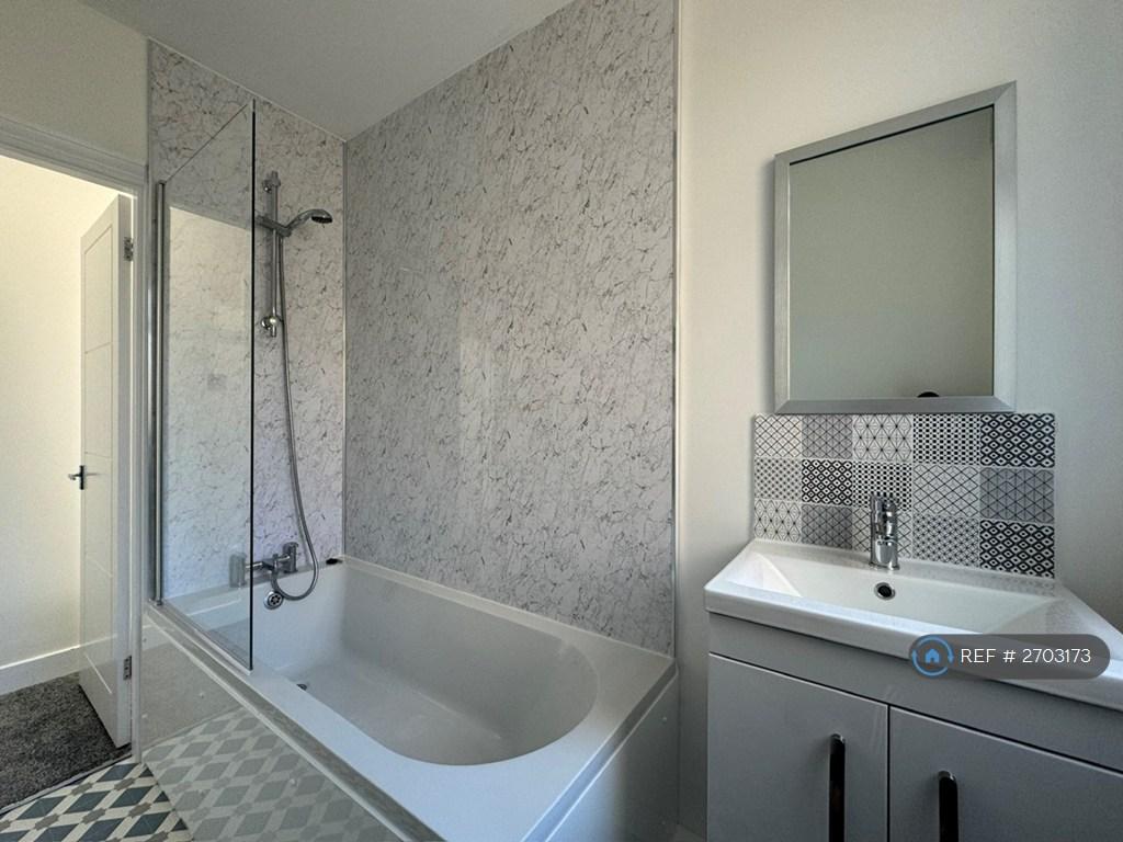 Bathroom/WC - 2.44m x 1.42m (8'0 x 4'8) - Double glazed window to side. Newly fitted white suite comprising panelled bath with shower over, low level WC, wash basin, heated towel rail.