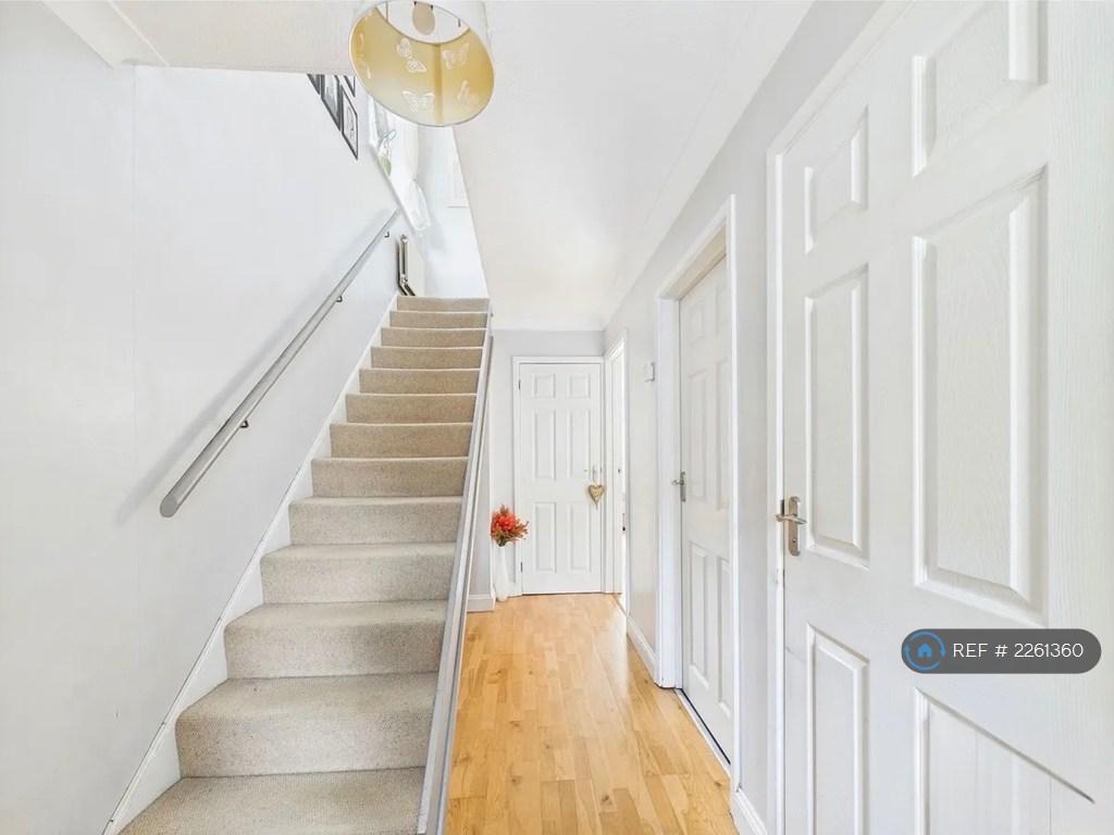 Upstairs, a bright and airy landing leads to the principal bedroom, which benefits from built-in wardrobe and fully tiled ensuite. The first floor also offers a second double bedroom, a well-proportioned single bedroom, and a modern family bathroom.