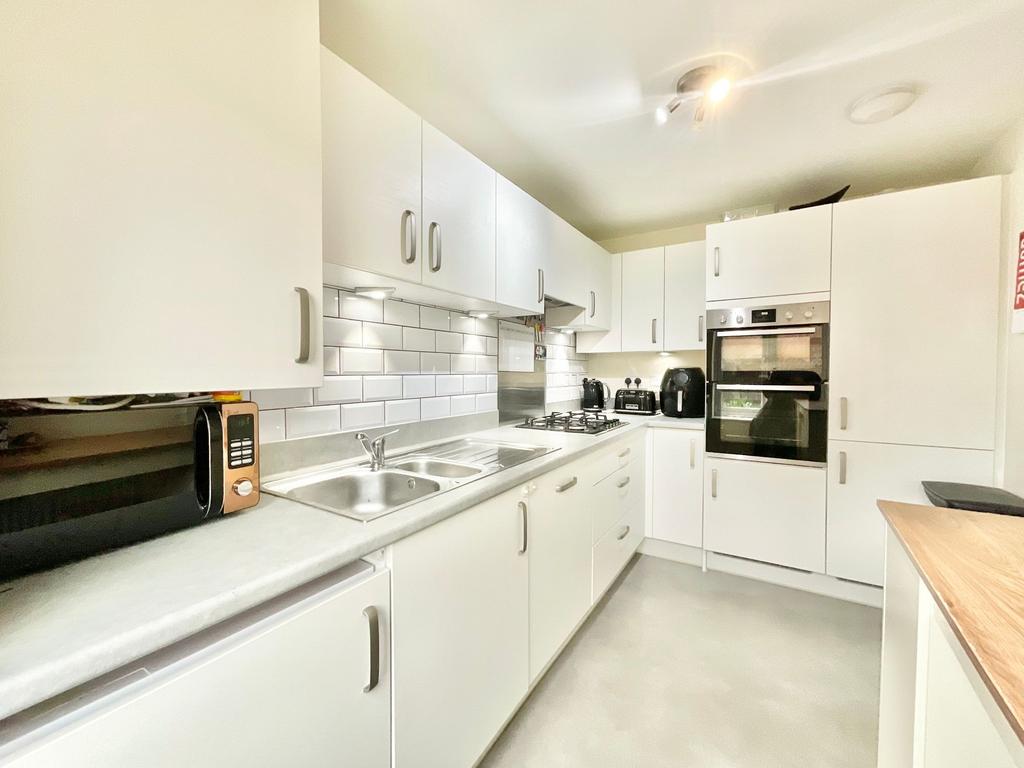 - Bright and spacious lounge/diner with glazed French doors leading to the rear garden. Practical L-shaped kitchen with sleek white cabinetry and integrated appliances.
