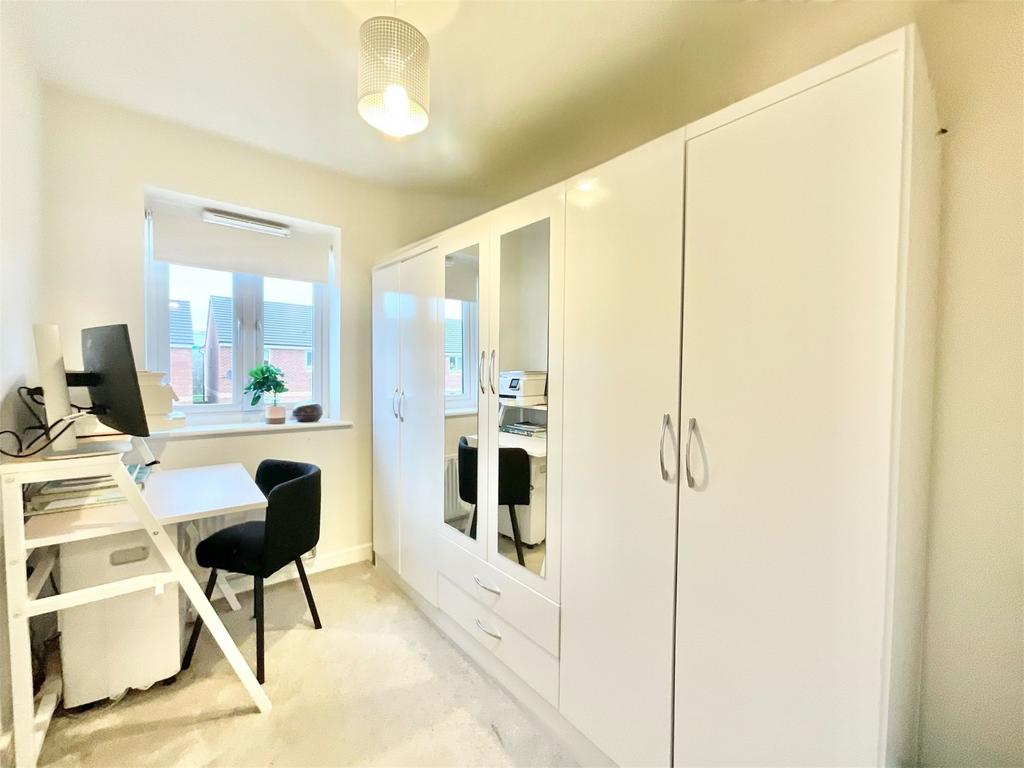 Outside, a South-West facing rear garden awaits with patio seating space and a well-manicured grass lawn. Convenient side access leads you to the driveway, where you’ll discover off-road parking and an Electric Vehicle charging point.