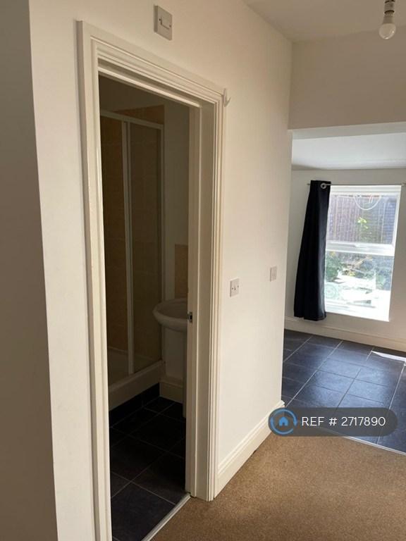 This studio apartment offers a practical living space with one bedroom and an en-suite bathroom. The property is unfurnished, allowing tenants the flexibility to personalize the space according to their preferences. The kitchen is well-equipped with essential appliances, including a fridge freezer, washing machine, and oven/hob, providing convenience for daily living.
