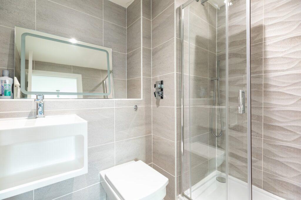 A controlled door entry security system leads to an illuminated communal entrance with stair access to all levels. Entrance hall with storage. Welcoming reception hallway with storage. Bright and spacious sitting/dining room with feature walk in corner bay window. Open plan to a well appointed refitted kitchen, with a range of contemporary wall mounted and floor standing units and complementary worktop surfaces. Bedroom one is double bedroom with fitted wardrobes and an attractively refitted ensuite shower room. Bedroom two, again a double bedroom, has fitted wardrobes. The refitted bathroom completes the overall accommodation.