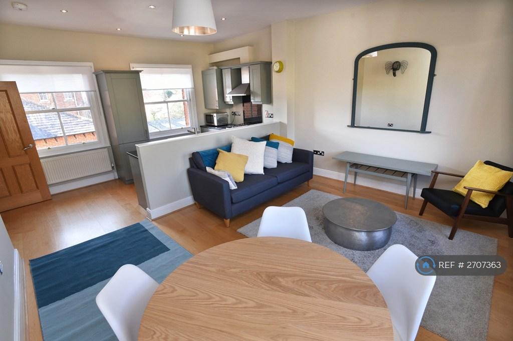 The rooms of this fabulous second floor apartment are spacious and light with high ceilings and sash windows. Of particular appeal is the open plan kitchen, lounge and dining area which provides a wonderfully generous living space with a dual aspect. The apartment offers two very attractive double bedrooms and two bathrooms. The large master bedroom has a gorgeous bay window with boxed seating area and comes with a beautifully appointed ensuite shower room. The apartment offers a surprising amount of storage space with numerous large built in cupboards and clever high level storage shelves in the hallway. The development is gated and there is a video phone entry system. There are well maintained communal gardens and a covered bike storage area. This property does not come with allocated parking and is not eligible for an on street parking permit.