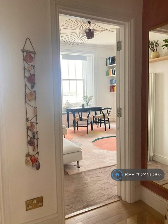 Spacious two-bedroom flat on Grand Parade, Plymouth Hoe. The flat is in a Regency terrace right on the waterfront, with high ceilings, big sash windows and lovely views over Plymouth Sound and Drake's Island.