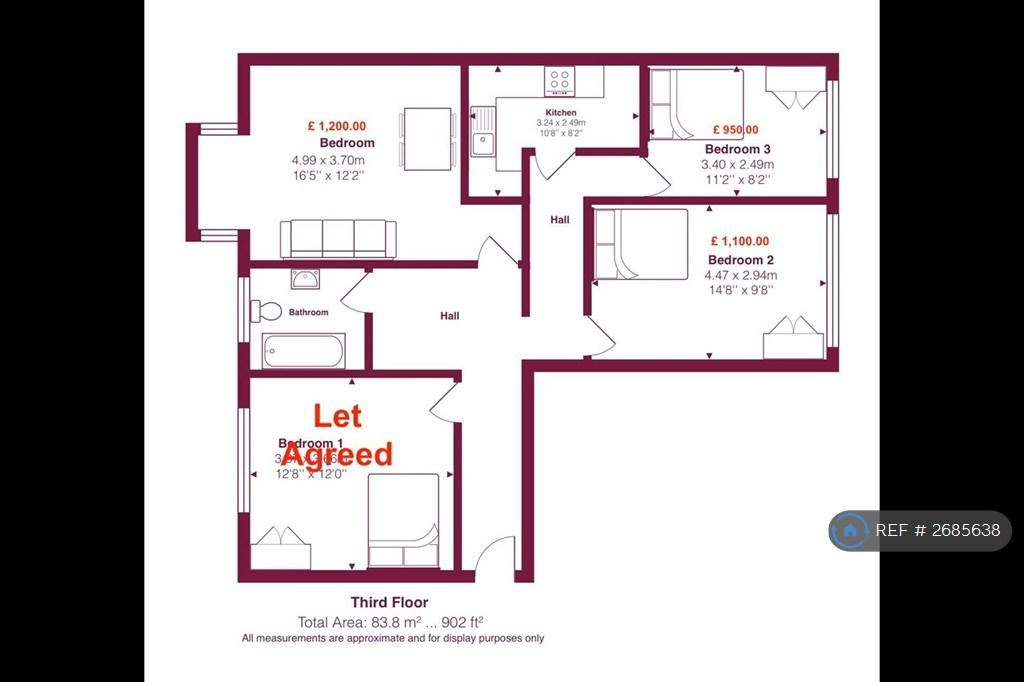 - Rent Amount: 3 rooms available, from £895.00 each per month (£206.54 per week)