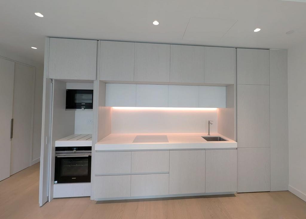 This exquisite residence is designed for modern living, featuring a spacious open-plan kitchen and living area. The sleek, fully-fitted kitchen boasts integrated appliances, flowing seamlessly into a bright and airy living room. Floor-to-ceiling windows flood the space with natural light and provide access to a generous private balcony, offering a serene outlook over the beautifully maintained communal gardens