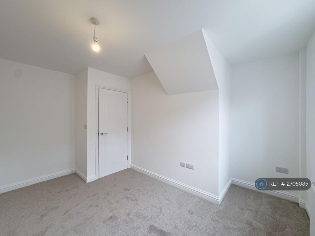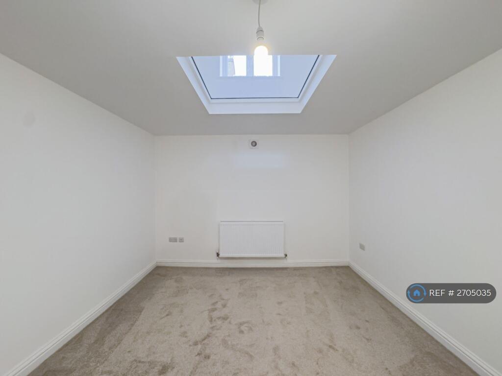 A spacious and bright master bedroom featuring two Velux windows, modern lighting and its own en-suite shower room. Large eaves cupboard running the width of the property.