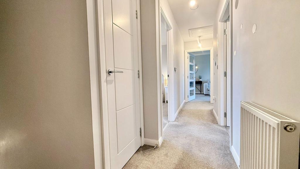 PRIVATE ENTRANCE DOOR:- The private entrance door opens to the bottom of the stairwell with the staircase proceeding to the landing where access is offered to the lounge, kitchen, two bedrooms and bathroom. An integrated storage cupboard offers ample storage together with the a loft space which is accessed via a ceiling hatch.
