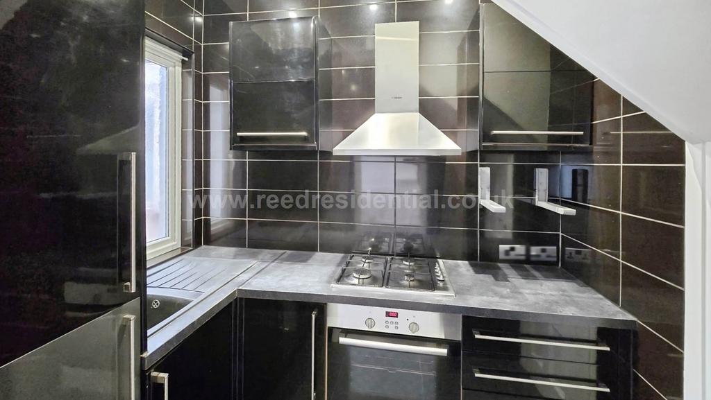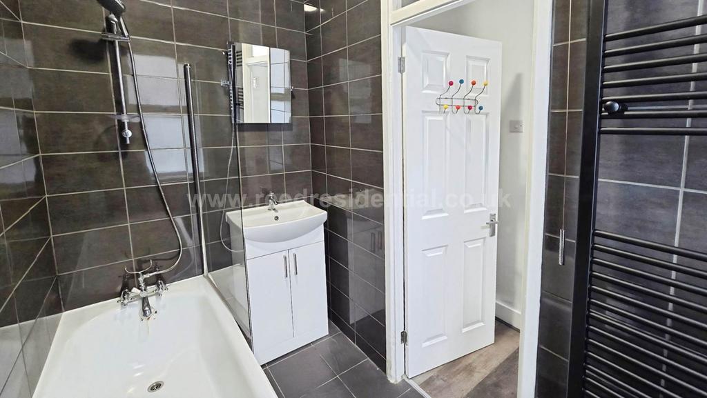 The flat benefits from its own private access at the rear of the building and this opens into a small hall, leading to the bathroom, with shower over bath. And also through to the lounge. The lounge has easy to clean flooring and a large window looking out to the rear. The lounge itself opens through a doorway to the modern kitchen with intergrated appliances and a storage cupboard. And finally at the front of the property, we have the large double bedroom.