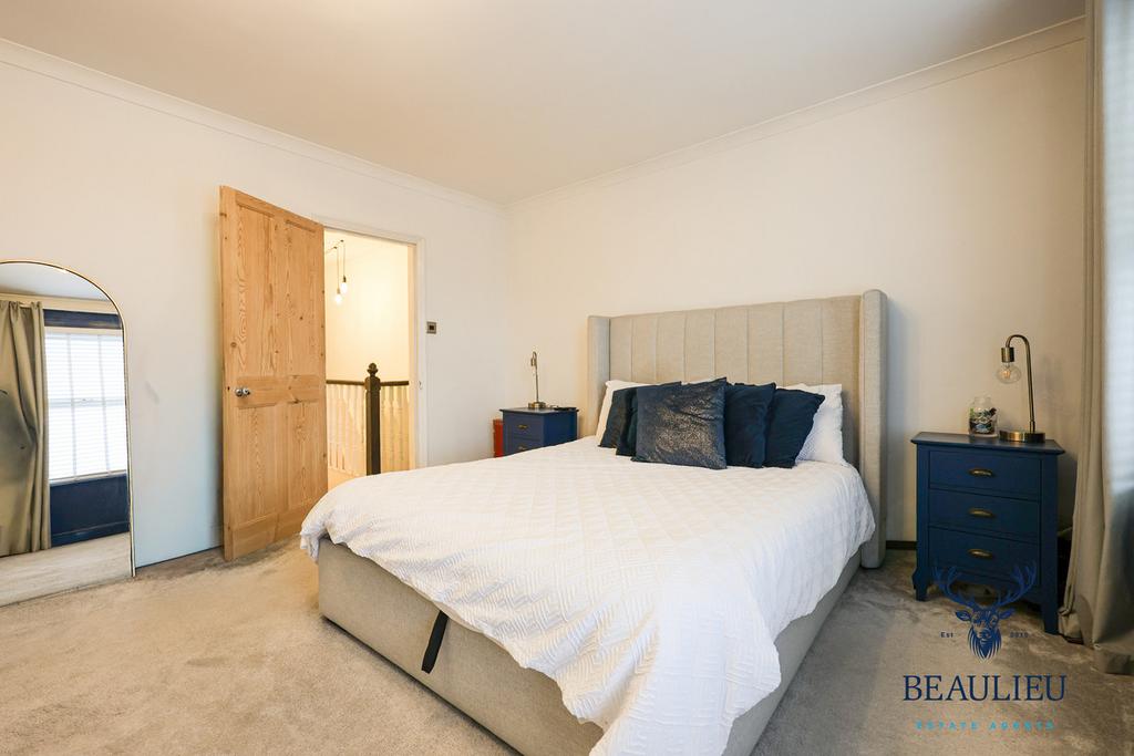 To the first floor, the landing leads to two well-proportioned bedrooms, including a substantial main bedroom with fitted wardrobes. The stylish family bathroom features a freestanding bath, corner shower and modern tiling throughout.