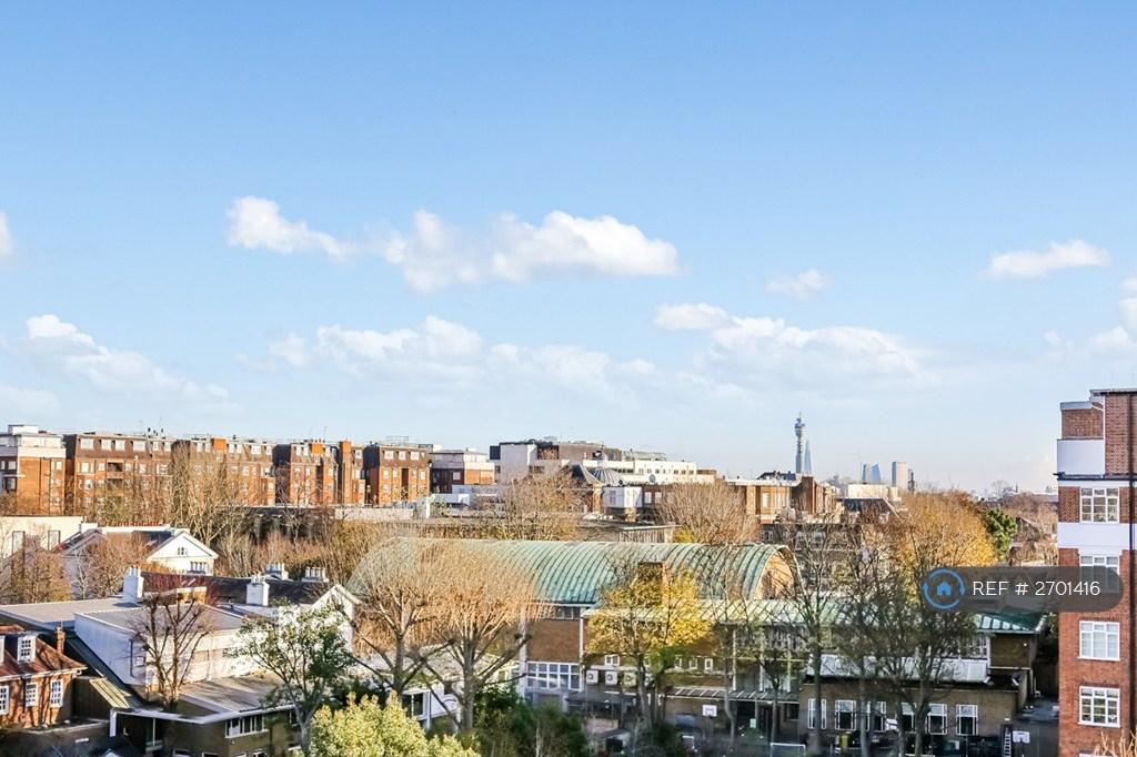 Two large windows facing BT tower and beautiful view of Central London bringing in abundant sunlight.