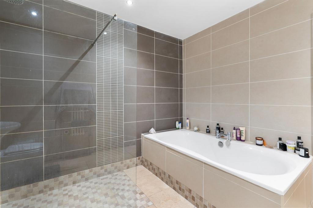 The master bedroom benefits from a full row of built-in wardrobes and a contemporary ensuite shower room with twin vanity basins and a stylish electric shower. The remaining three bedrooms are all good-sized doubles. The family bathroom has a high-end, hotel-style feel, featuring a deep bath for relaxing soaks and a walk-in shower.