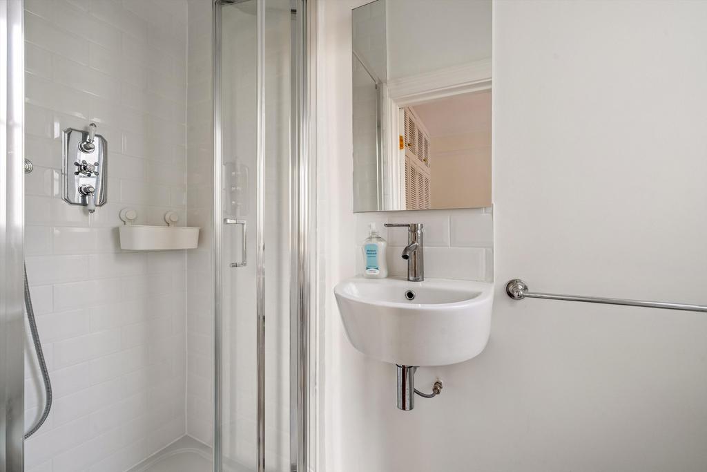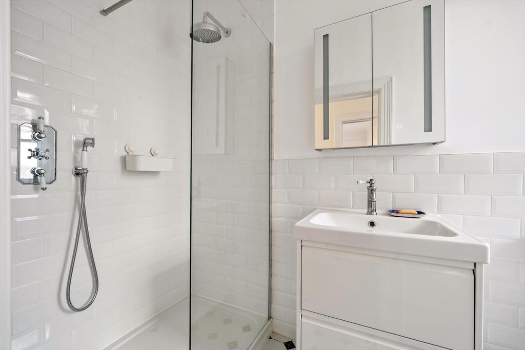 Positioned quietly to the rear of the building, the flat features a generous reception room with a pretty, south facing outlook and an elegant fireplace. The separate kitchen sits just off the hallway and offers practical workspace and storage.