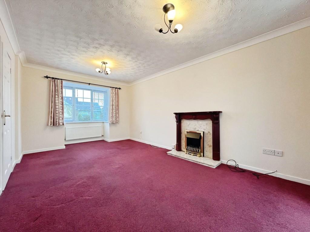 Window to front, two radiators, feature electric fireplace and patio sliding doors to: