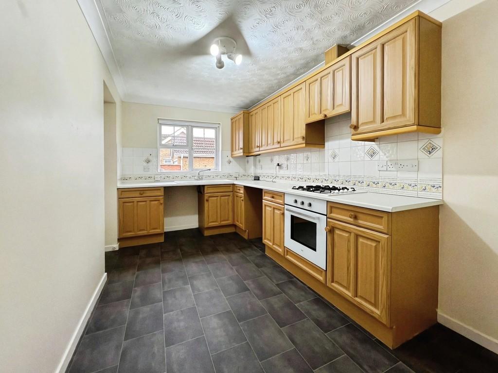 Fitted with wall and base units with integral oven, hob and extractor hood, enclosed gas fired boiler system, plumbing for washing machine, space for fridge/freezer, one and half bowl sink unit with mixer, window to rear, radiator, door to conservatory.
