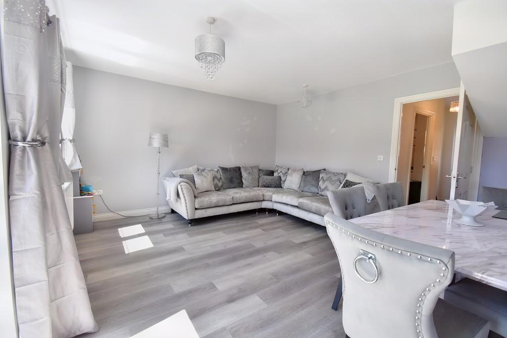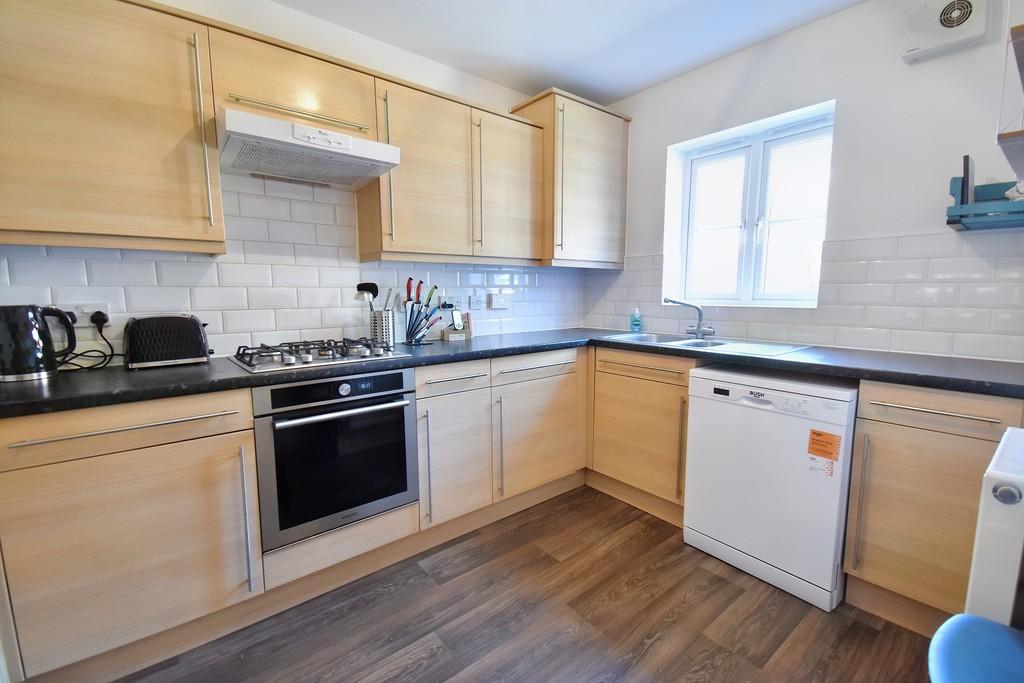 Inside, the ground floor offers a spacious living room with French doors that let in lots of natural light and open onto the garden. The kitchen has modern fitted units, plenty of storage, space for appliances and an integrated dishwasher.