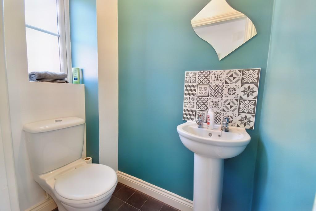Upstairs, there are two double bedrooms, one with an en-suite, a single bedroom and a family bathroom. The main bedroom is a great size and very bright, with its own en-suite featuring a WC, basin and shower. The second bedroom is also a good-sized double, and the third bedroom is a generous single.