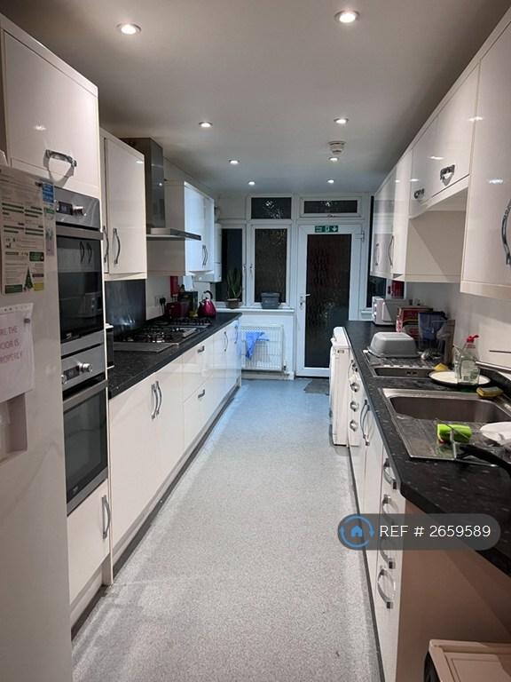 Recently refurbished 7 double bedroom house, furnished (double bed, side tables, chair and wardrobe). Kitchen has 2 ovens, 2 sinks, microwave, fridge, freezer and 2 washing machines and plenty of cupboard space.