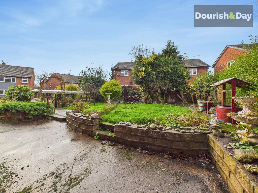 The home is set behind a lawned front garden with steps to the property. To the side is a further lawn and shrubs to the borders.