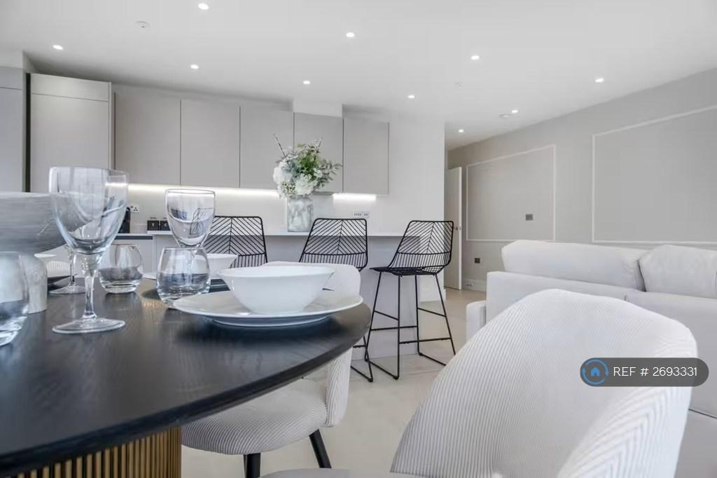 Step into an open-plan lounge and kitchen area that exudes contemporary charm. With its wooden floors, sliding patio door, and access to private balconies, the space is perfect for both relaxation and entertaining. The state-of-the-art fitted kitchen features integrated BOSCH appliances, including a dishwasher, washer-dryer, fridge-freezer, electric induction hobs, and oven, ensuring an effortless cooking experience.