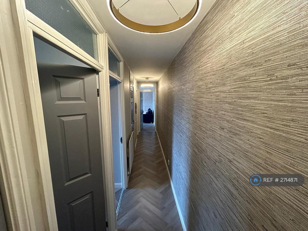 Hallway with 2 large storage cupboards.