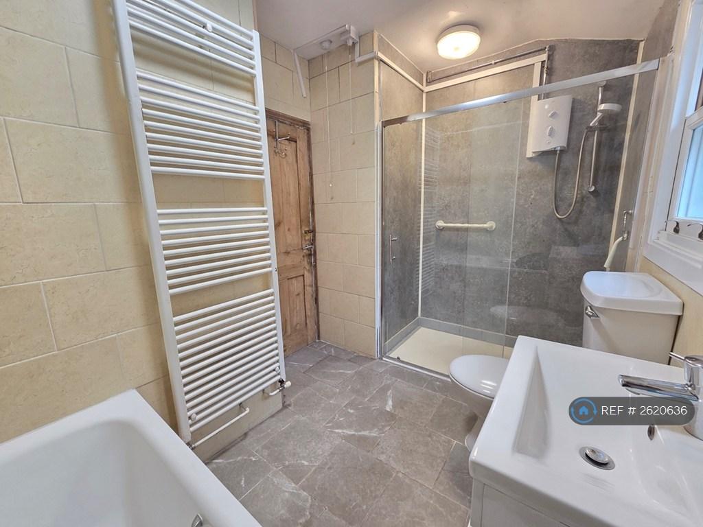 Ground floor WC and an upstairs fully tiled bathroom with both bathtub and separate shower