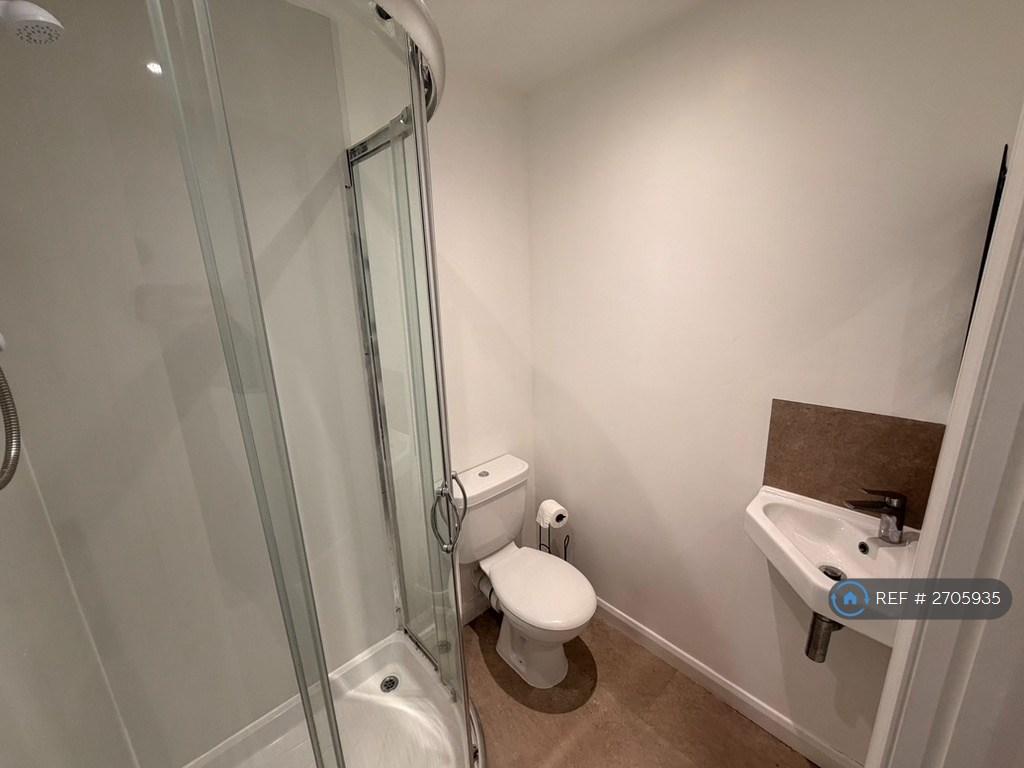 - A recently refurbished bathroom with an electric shower and heated towel rail.