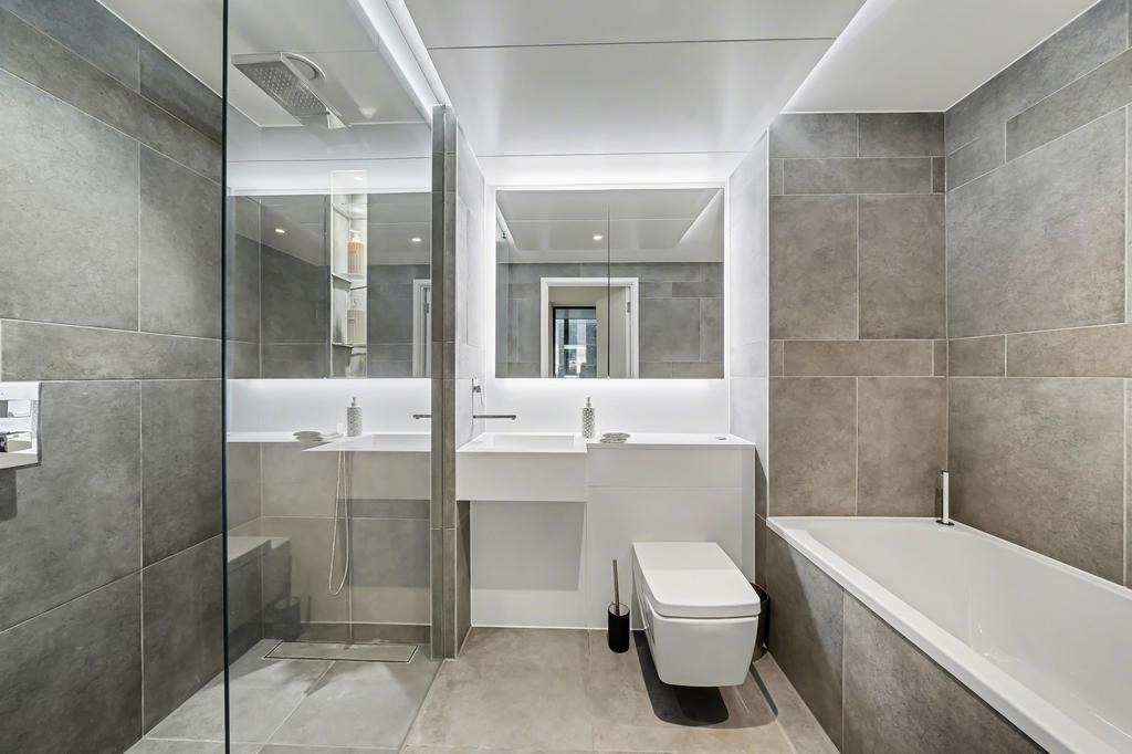 Both bedrooms are generously proportioned, offering plush carpeting, built-in wardrobes, and en-suite bathrooms for ultimate privacy and comfort. The master suite is particularly impressive, with a luxurious bathroom that includes a walk-in shower, modern fixtures, and elegant tiling. The third bathroom, finished to the same high standard, is conveniently located for guests and day-to-day use.