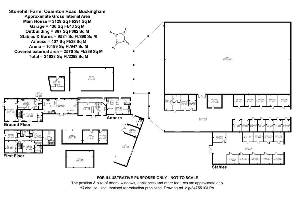 Outstanding equestrian facilities including American Barn stabling with covered tie ups, store and tack rooms, indoor and outdoor arenas with irrigation systems. 4 furlong canter track. Further outbuildings including large hay barn.All in About 22.5 Acres
