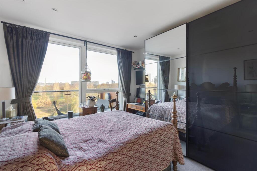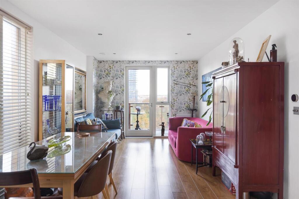 Set on the fourth floor of an attractive modern development and spanning 773 sq ft, this bright and spacious home offers a dual-aspect living area with floor-to-ceiling windows that open onto a large private balcony. The contemporary kitchen includes integrated appliances and a sleek pale-blue tiled splashback.