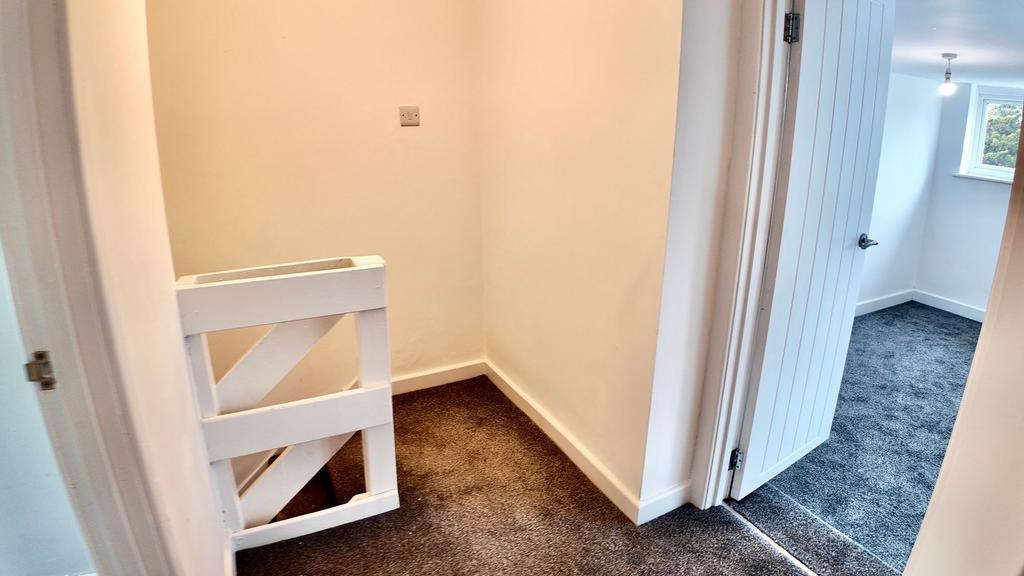 Upstairs, a small landing leads you to three bedrooms. The two double bedrooms are generously sized, offering plenty of space for restful nights and personal touches. Large windows in both rooms keep things light and airy, while neutral decor provides a blank canvas for your own style. The third bedroom is a cosy single, ideal for a child’s room, guest space or even a home office if you need it.