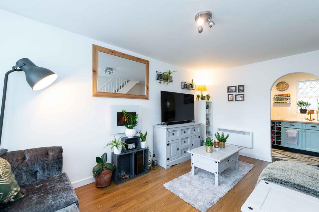 The property is well presented throughout, including two downstairs reception rooms, modern kitchen, two bedrooms and a fully tiled white bathroom suite.