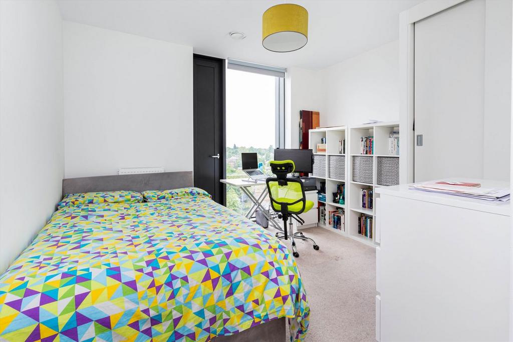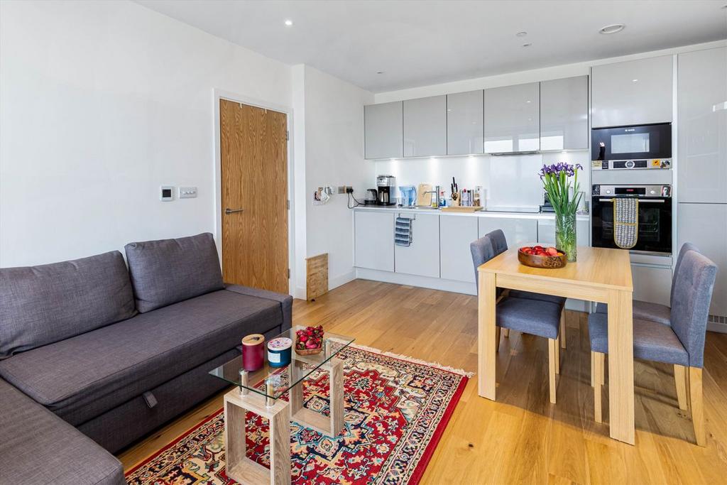 A stunning one bedroom luxury apartment comprising a large open plan kitchen / reception that leads to a balcony, a large bedroom with built in wardrobes and a modern bathroom with a shower over the bath.