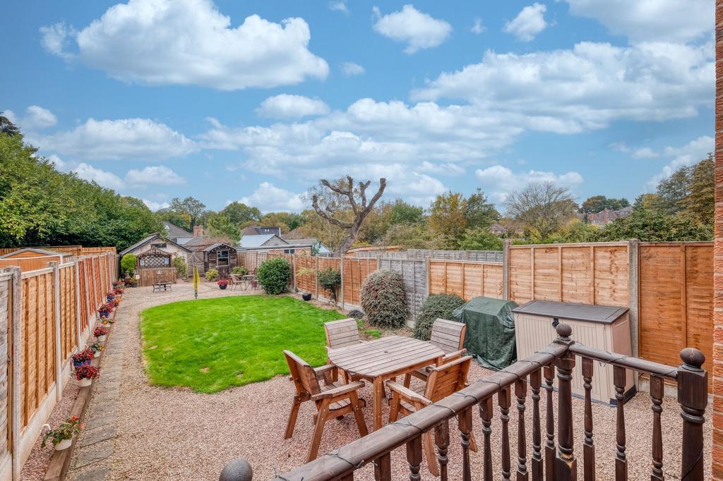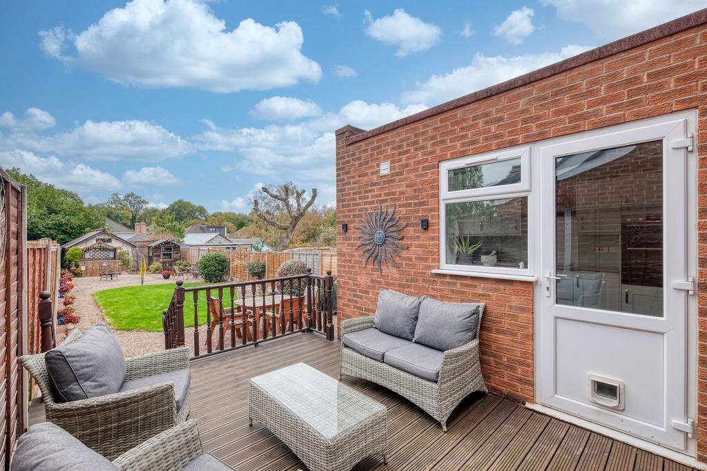 Externally, the property continues to impress. The rear garden features a raised decking area directly accessible from the kitchen, perfect for outdoor dining and entertaining. This leads down to a well-maintained lawn and landscaped garden with mature borders and gravel pathways – ideal for families and those who enjoy spending time outdoors. At the front, the property benefits from a private driveway providing off-road parking.