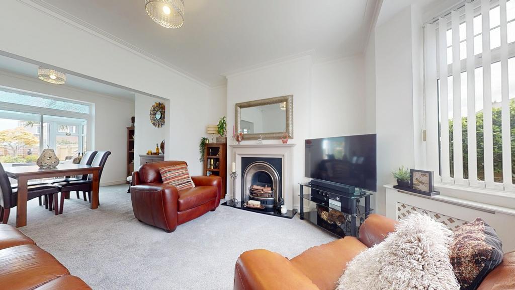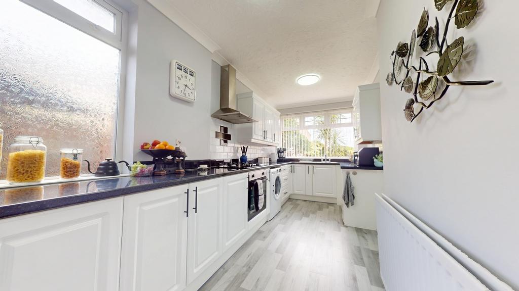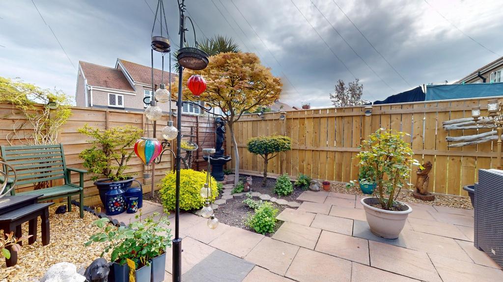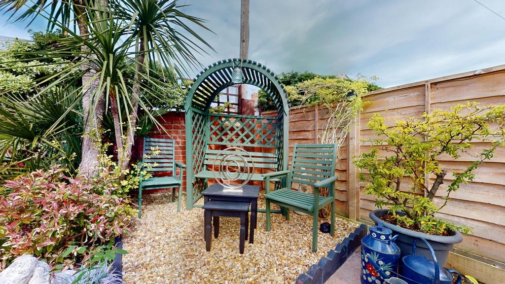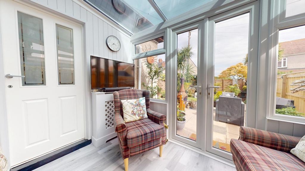 Upon entering, you're greeted by a practical porch area, perfect for storing coats and shoes. This leads into a spacious and tastefully decorated hallway that sets the tone for the rest of the home. The living room is generously sized and seamlessly connects to the dining area, both adorned with neutral décor that enhances the sense of space and light. The kitchen is well-equipped, accommodating all essential appliances and offering ample storage. At the rear, a charming sunroom provides an additional living space, ideal for relaxing during through all the months, benefiting from 'E' glass and radiator keeping it cosy all year round. French doors open out to a sunny southwest-facing garden, thoughtfully landscaped to include multiple seating areas amidst lush greenery, creating a peaceful outdoor retreat. The property also benefits from convenient side access.