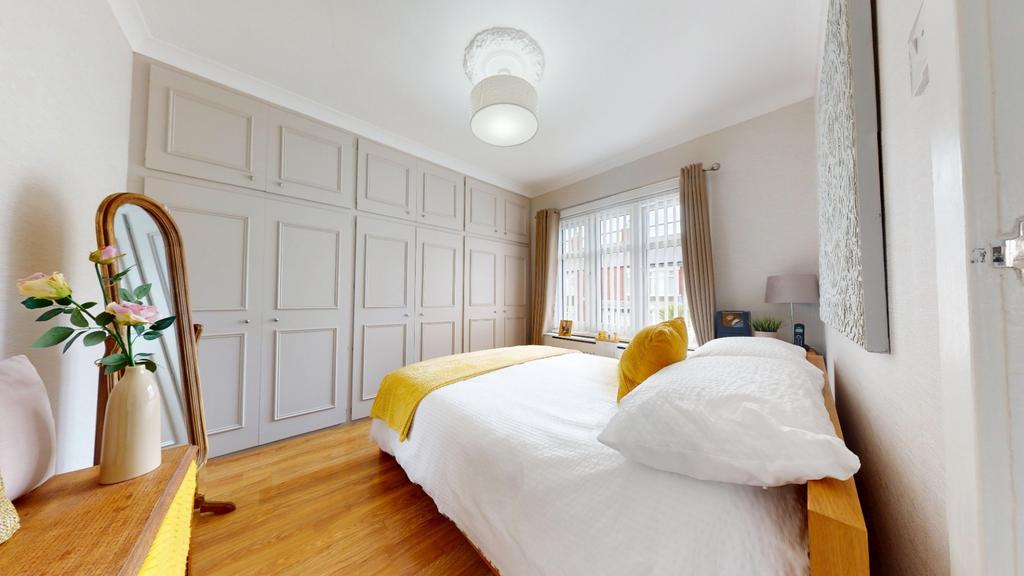 - Two double bedrooms with full-length fitted wardrobes; third bedroom with built-in storage.