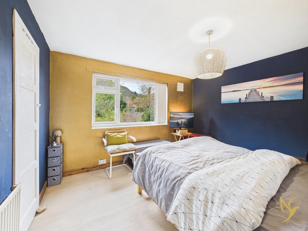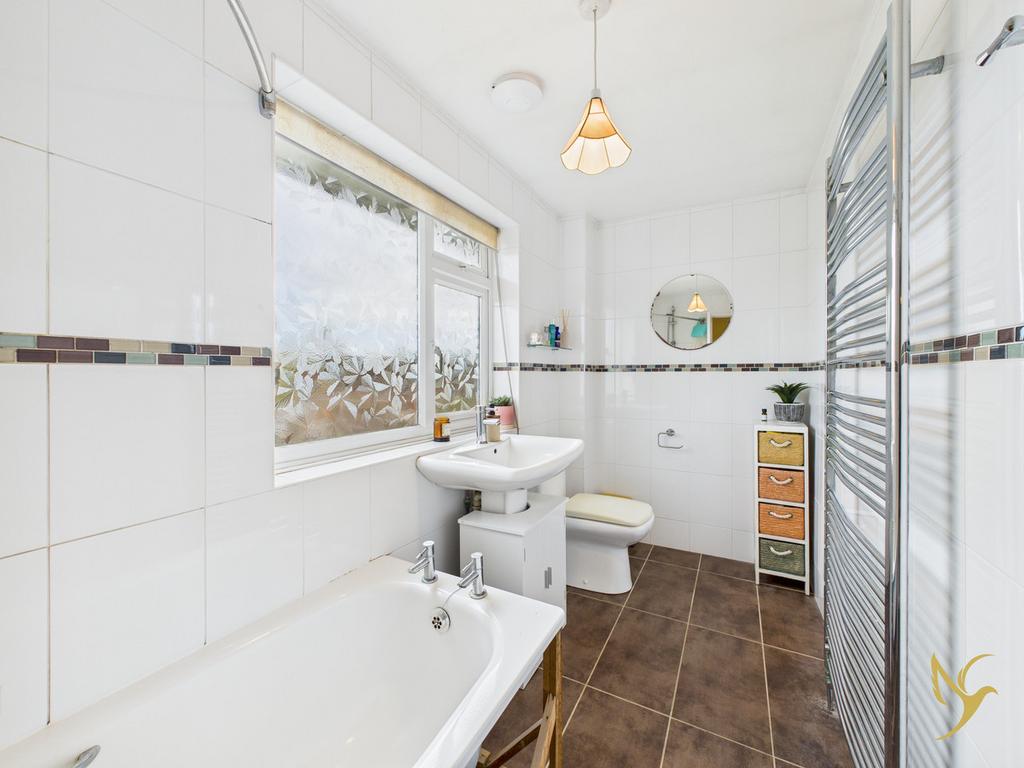 Upstairs, the landing is filled with natural light from the front window and provides access to all four bedrooms and the family bathroom. The main bedroom sits to the rear and enjoys lovely views across the garden, reaching out towards the Malvern Hills, a delightful and ever-changing backdrop. Two further bedrooms at the rear also share this peaceful outlook, while the fourth bedroom sits to the front and includes a built-in cupboard, making it ideal as a child’s room, study, or guest space. The family bathroom includes a panel bath with shower over, WC, wash basin and heated towel rail.