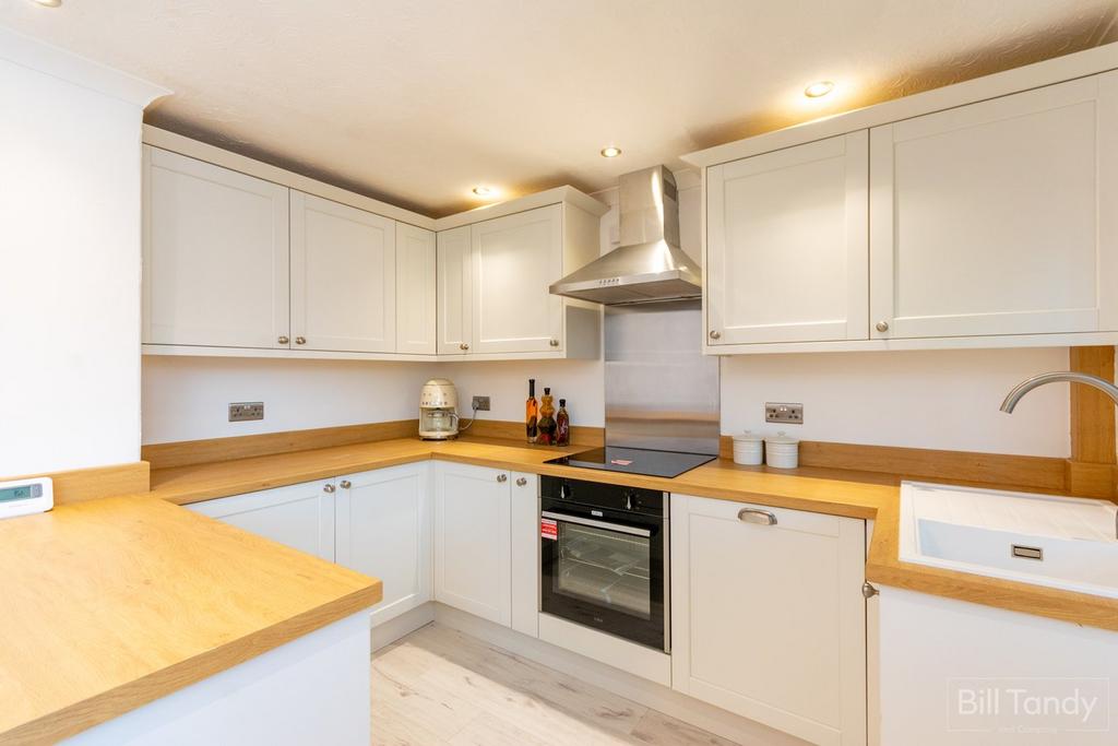 6.40m x 3.00m (21' 0" x 9' 10") having a continuation of the modern wood effect flooring this bright space has modern Shaker style base units with complementary work surfaces above and matching upstands, matching wall mounted units, integrated induction hob with overhead extractor and oven below, sink and drainer with mono mixer tap, integrated dishwasher, ceiling light point and recessed downlights, radiator, understairs storage cupboard, UPVC double glazed window overlooking the rear garden, UPVC composite double glazed door leading out to the rear porch with UPVC double glazed window to side.