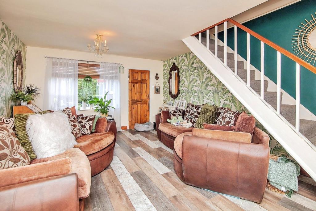 Lounge - A bright and spacious room offering generous space for furniture for a range of uses, with dual aspect double glazed windows providing ample natural light, wooden flooring, stairs leading to the first floor accommodation, and a door leading to the kitchen.
