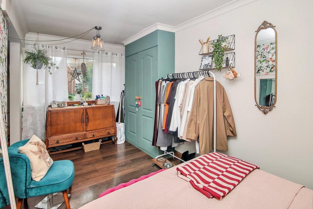 Bedroom Two - A spacious double sized bedroom with a rear aspect double glazed window, wooden flooring, and a built-in storage cupboard.