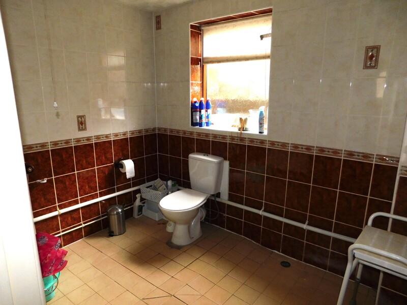 Tiled from floor to ceiling in ceramic tiles, tiled floor, W.C., electric shower unit, wash hand basin, and a double glazed window.