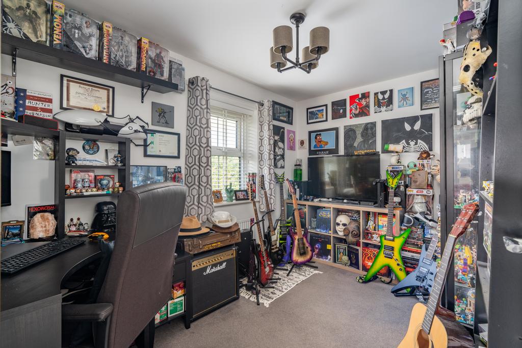 Dual aspect room with double glazed windows to front and side. Carpet. Skirting boards. Radiator. Two built-in storage cupboards.