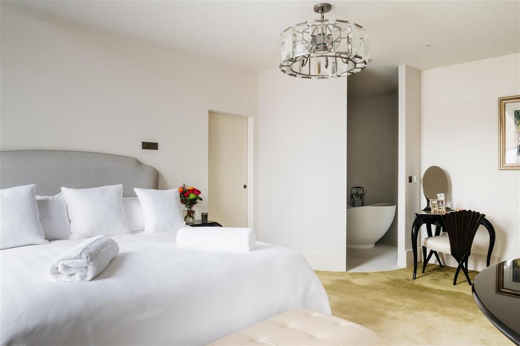 The sophisticated bedrooms to the first floor are bathed with light from the original Georgian windows now automated for ventilation. The Vi-sprung beds of the highest comfort and sit above the 100% New Zealand Wool carpets which is soft underfoot. Pull the black-out lined curtains made from sumptuous fabric for a peaceful nights sleep, in this small oasis, at the end of a private cul de sac and adjacent to an historic monument and gardens.