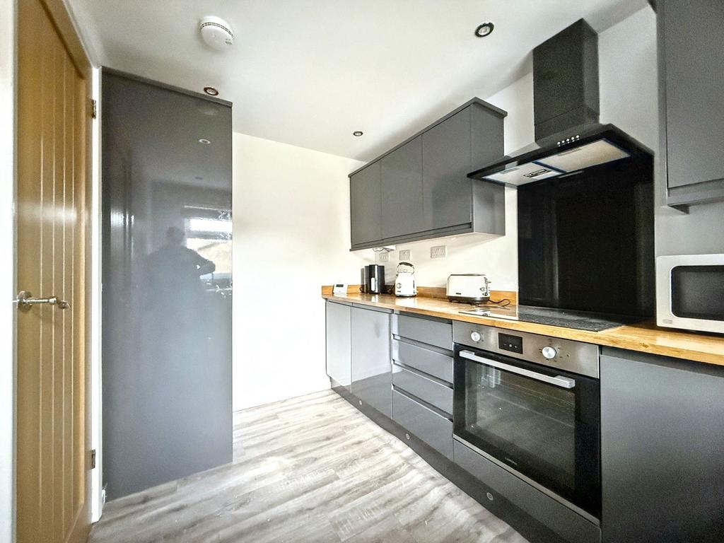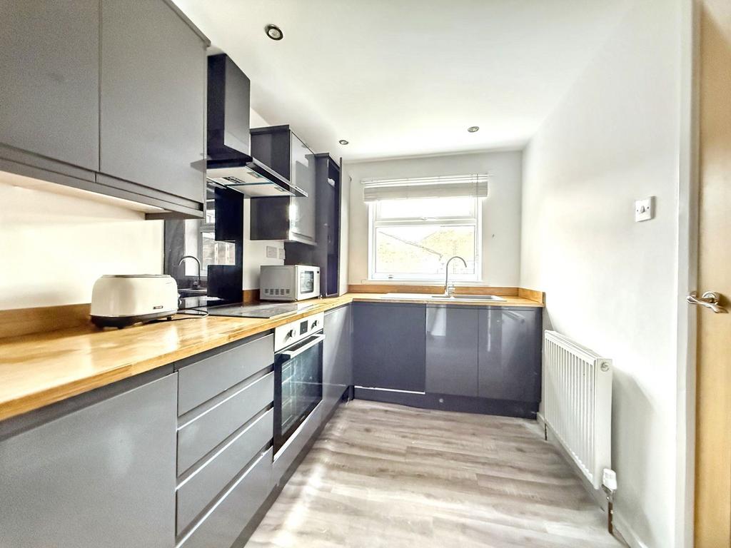 The property features a spacious reception room, an upgraded modern kitchen, two good-sized bedrooms, and an upgraded contemporary family bathroom. Externally, the home benefits from a low-maintenance private rear garden, providing easy access to the larger detached single garage and driveway for convenient parking and storage.