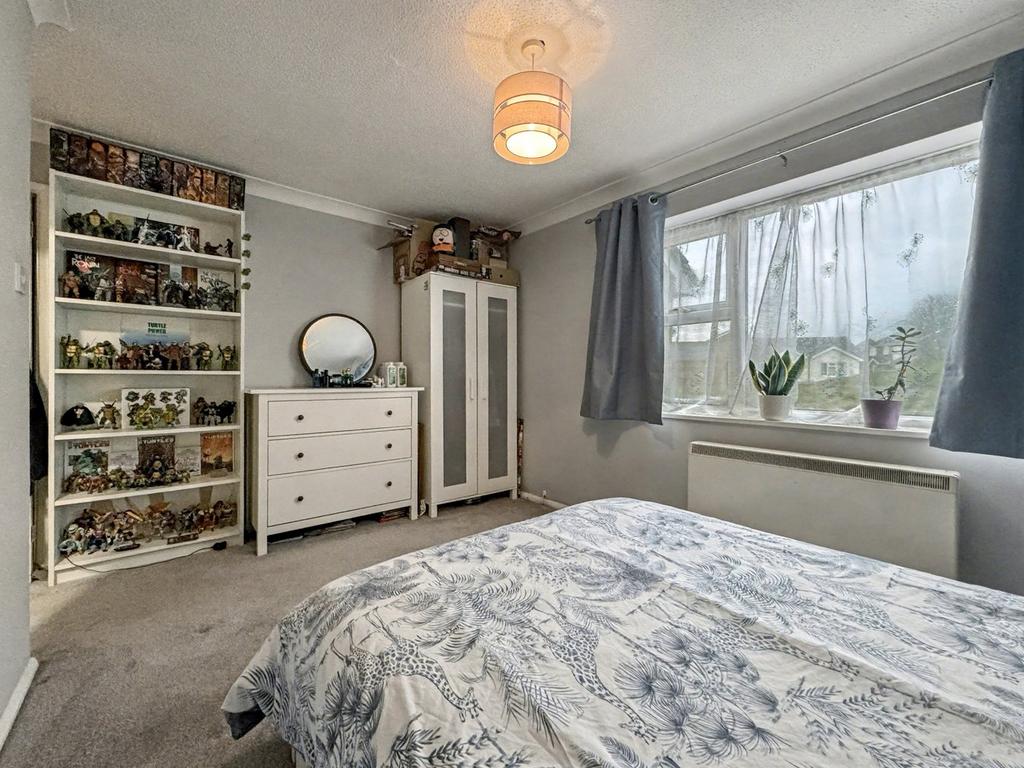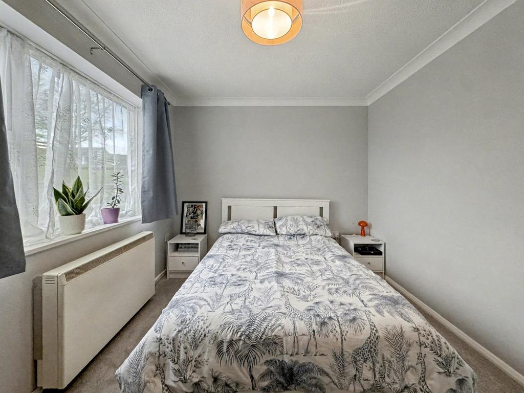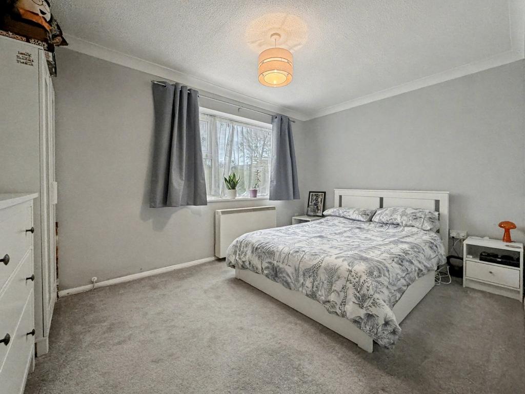 A generous double bedroom with large double glazed window allowing natural light to flood the room. Newly carpeted in 2021 and offering space for wardrobes, drawers, and additional storage. Calm and neutral décor creates a peaceful retreat. Radiator. Built-in storage cupboard.