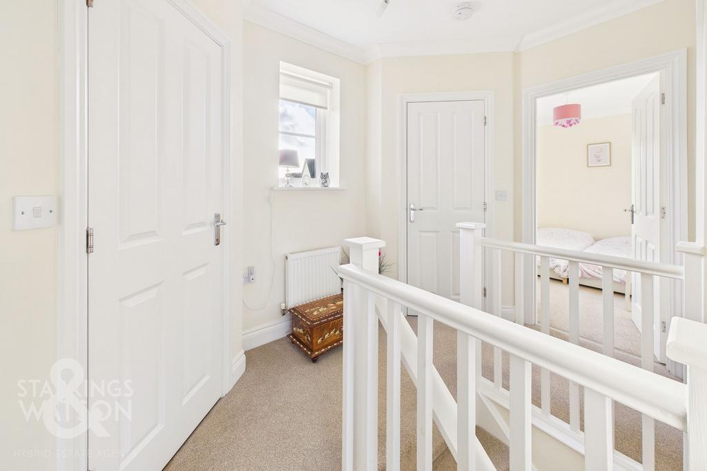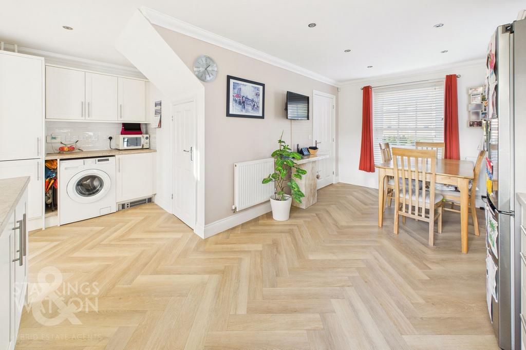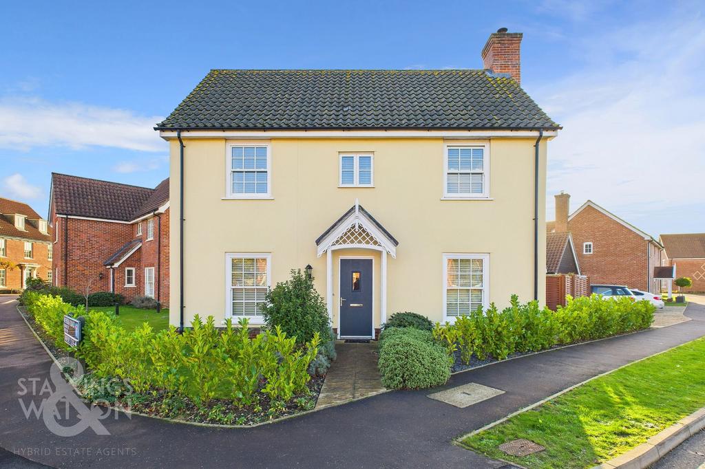 This modern 2018 built HOPKINS HOME benefits from a remaining NHBC warranty, whilst internally a STYLISH and SPACIOUS LIVING environment is ideal for families and professionals alike. Thoughtfully EXTENDED to provide approximately 1011 sq. ft (stms), the property boasts an impressive 18’ TRIPLE ASPECT SITTING ROOM, complete with a WOOD BURNER that creates a warm and inviting atmosphere. The heart of the home is the 16’ L-SHAPED KITCHEN and DINING ROOOM, designed for both every-day living and entertaining, with a PRACTICAL LAYOUT that maximises space, whilst including INTEGRATED COOKING APPLIANCES and WHITE GOODS. A dedicated study provides an excellent work-from-home solution or additional entrance space, while also benefitting from a convenient ground floor W.C from the HALL ENTRANCE. Upstairs, there are THREE WELL-PROPORTIONED BEDROOMS, including a main suite with its own EN SUITE SHOWER ROOM, alongside a MODERN FAMILY BATHROOM with half tiled walls. Immaculately presented throughout, this property combines s CONTEMPORARY FINISH with PRACTICAL DESIGN, making it ready to move straight into. Stepping outside, the property enjoys a superb SOUTH-FACING GARDEN that captures the sun throughout the day, offering an ideal setting for outdoor relaxation or entertaining guests. The garden is thoughtfully LANDSCAPED, providing a mix of LAWN and PATIO AREAS that are perfect for alfresco dining, children’s play or simply unwinding in a tranquil environment. To the front, a double driveway provides ample off-road parking for multiple vehicles and leads to a garage, which offers further secure parking or valuable storage space.